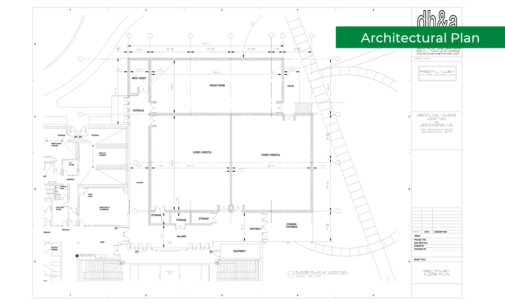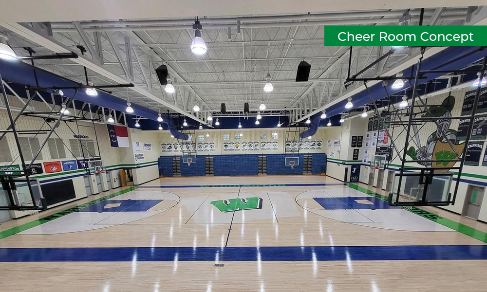 By building this addition, we create a safe and designated practice space for our cheer and wrestling teams. Each program will have their own 50x65 practice area that is fully